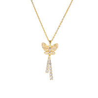 คุณภาพสูงเรียบง่ายเกาหลี Charms 18K Gold Platedคริสตัลเพชรสแตนเลสผู้หญิงสร้อยคอผีเสื้อเครื่องประดับ